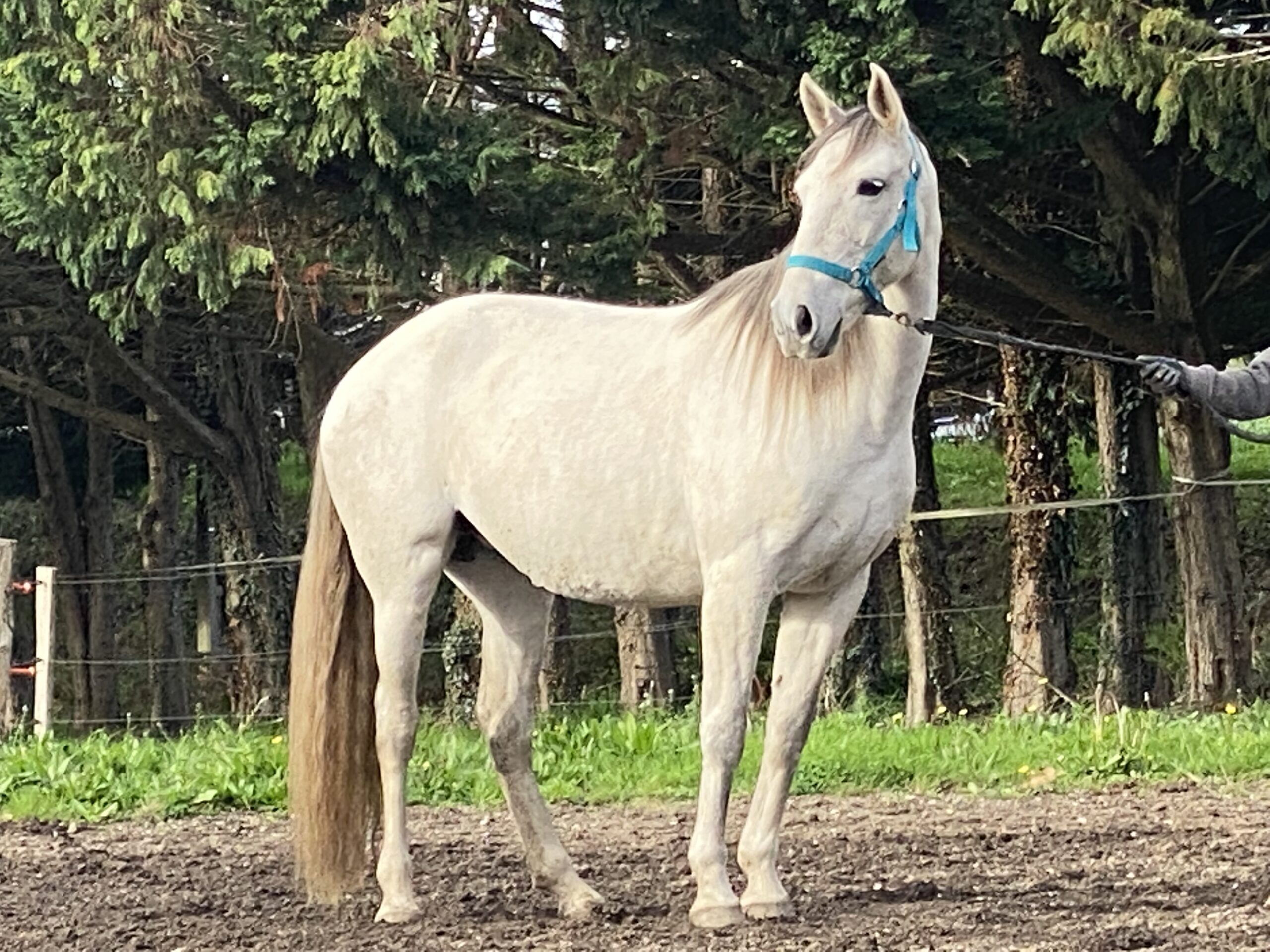 AGILA est une jument lusitanienne dressée tardivement proposée pour du loisir monté.